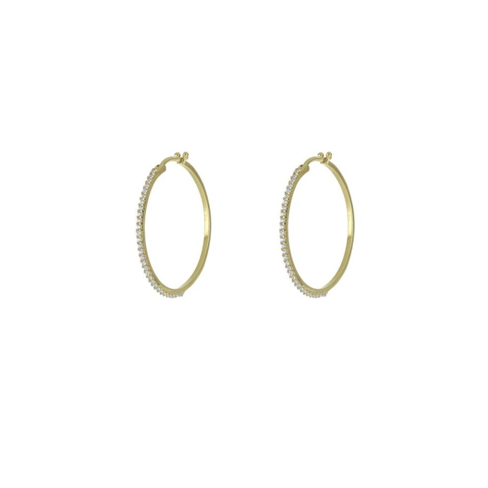 Orecchini a Cerchio Oro Giallo con Zirconi 2 cm