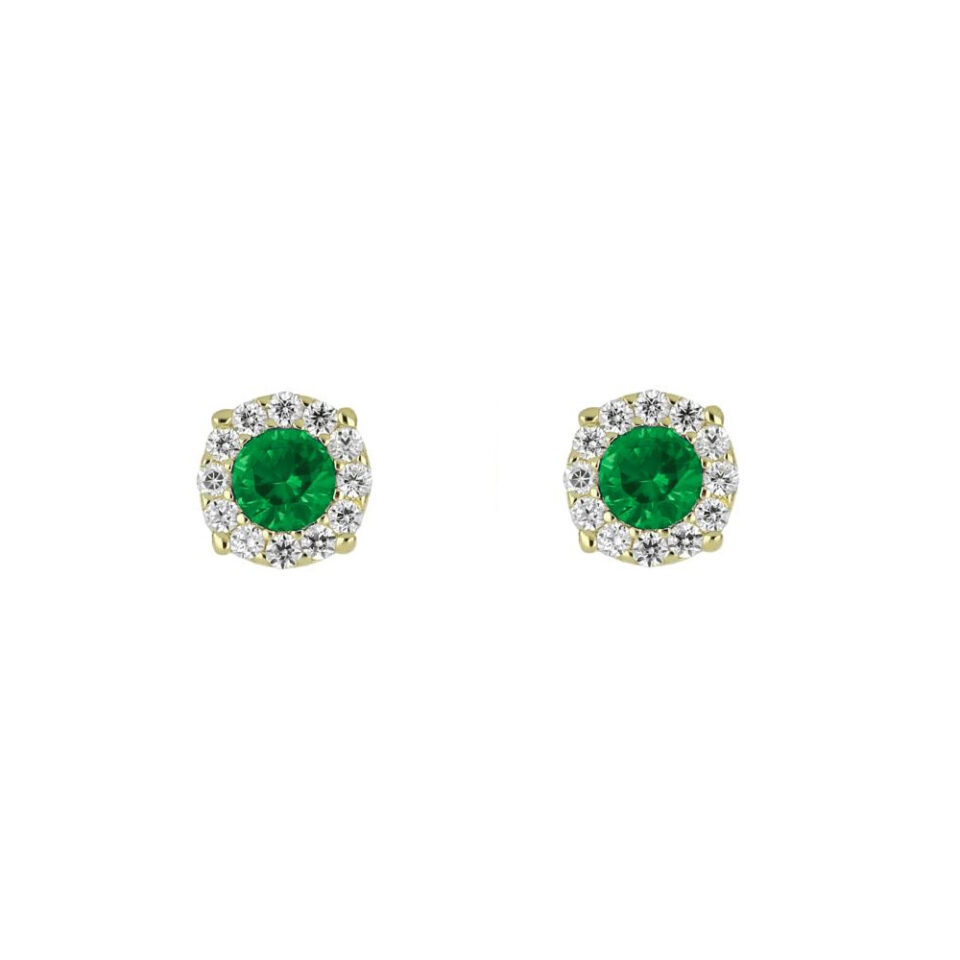 Orecchini Oro Giallo Punto Luce Halo Verde