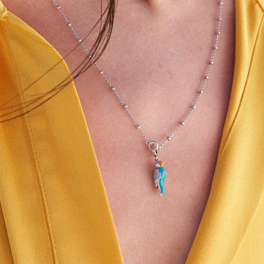 Ciondolo charm a forma di Pappagallo della collezione Storie di Rosato Gioielli in argento 925 con smalto azzurro e zirconi bianchi, una bellissima idea regalo per esprimere la propria unicità o un portafortuna da portare sempre con te.