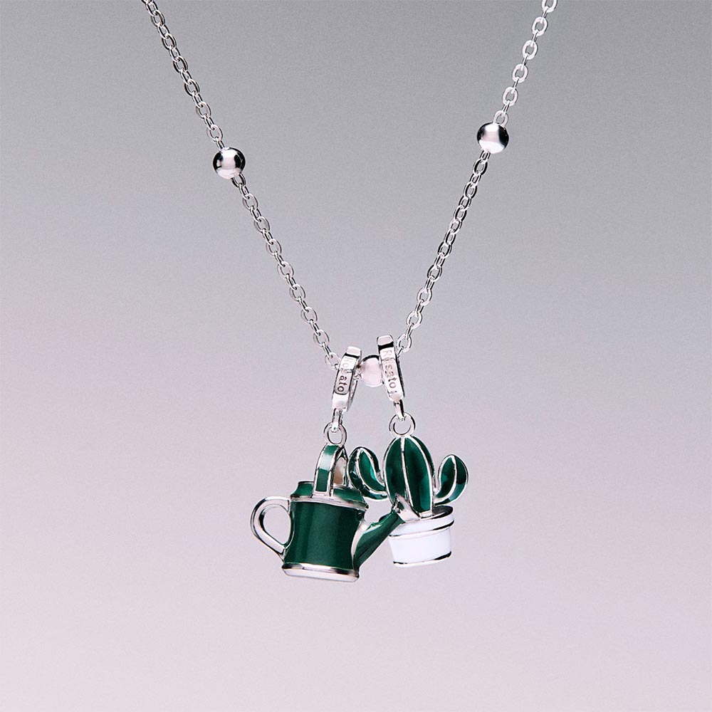 Ciondolo charm Pianta Grassa Cactus della collezione Storie di Rosato Gioielli in argento 925con smalto verde e bianco, una bellissima idea regalo per esprimere la propria unicità o un portafortuna da portare sempre con te.