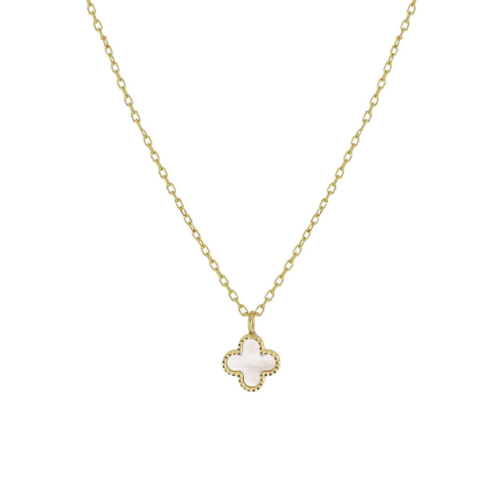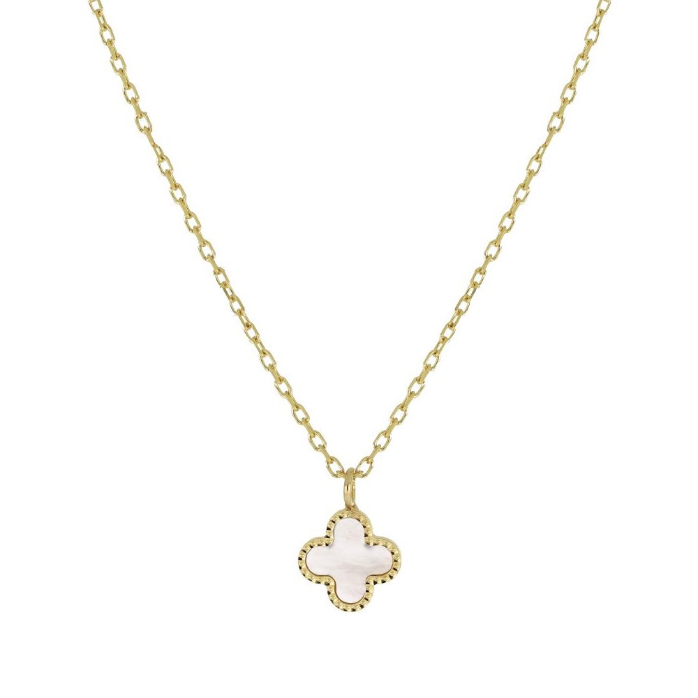 Collana da donna con ciondolo pendente a forma di croce in Oro Giallo titolo 375 (9 carati) e madreperla bianca.