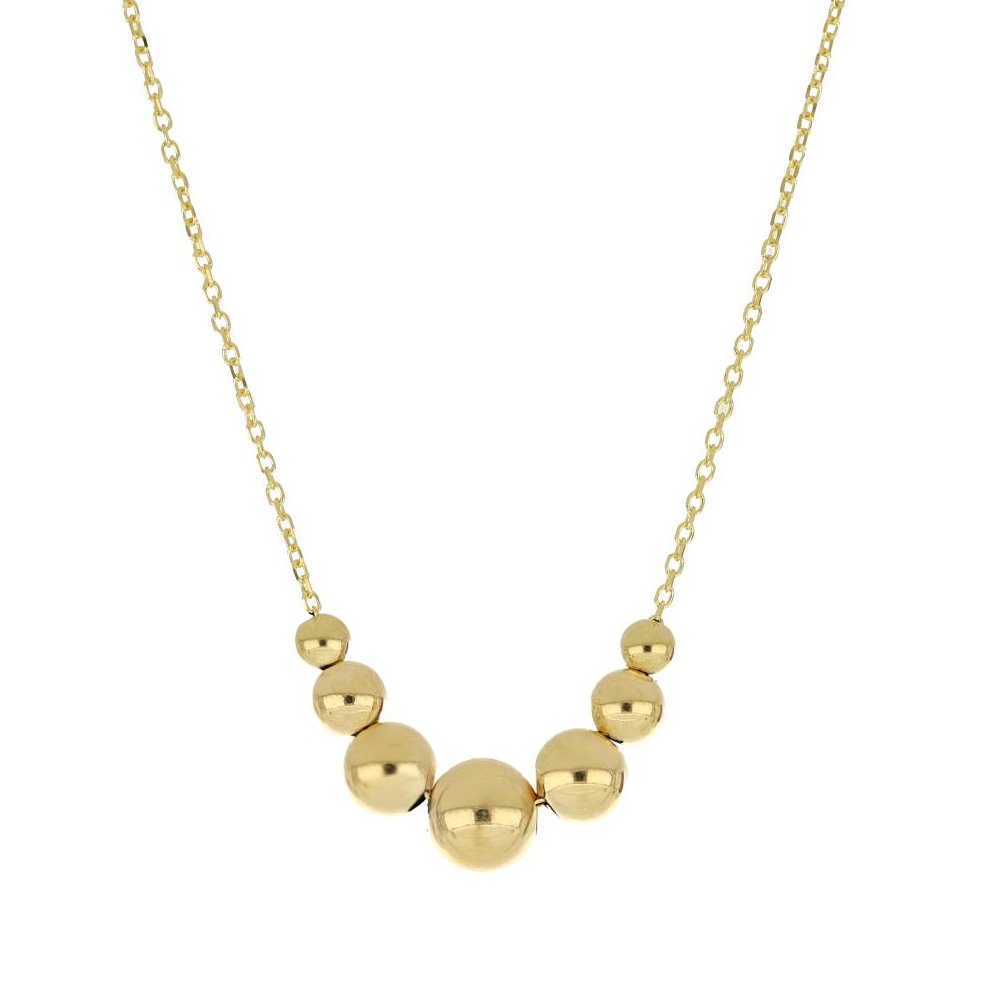Collana girocollo da donna con sfere a scalare in Oro Giallo titolo 375 (9 carati) con catena forzatina.