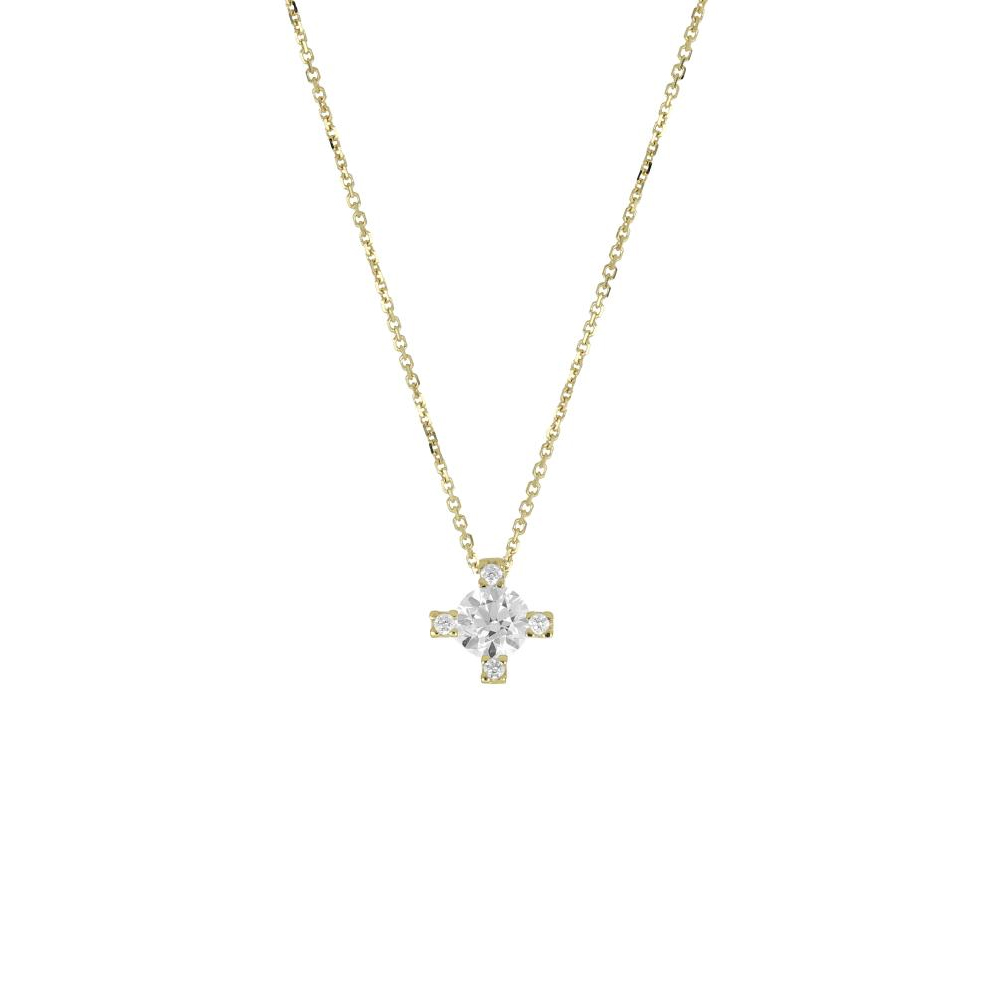Collana da donna con ciondolo punto luce prezioso in Oro Giallo titolo 375 (9 carati) con catena forzatina e zirconi Top quality taglio tondo brillante.