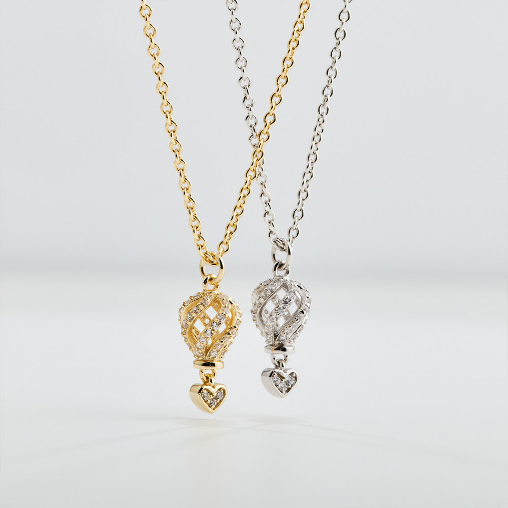 Collana donna con ciondolo a Mongolfiera traforata di Rosato Gioielli collezione Aria in Argento 925 placcato oro giallo con di zirconi bianchi e dettaglio a cuore.