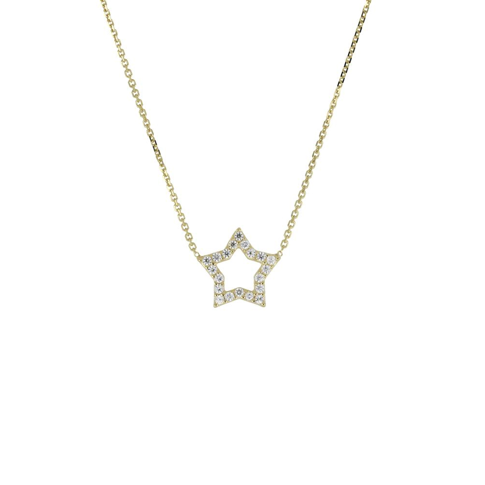 Collana donna con ciondolo stella in Oro Giallo titolo 375 (9 carati) con catena e zirconi Top quality bianchi.