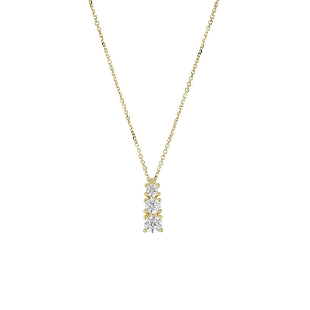 Collana da donna con ciondolo Trilogy in Oro Giallo titolo 375 (9 carati) con catena forzatina e tre zirconi bianchi Top quality taglio tondo brillante.