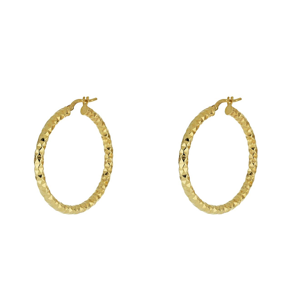 Orecchini da donna a cerchio in Oro Giallo titolo 375 (9 carati) diamantati dal diametro di 2.5 cm.