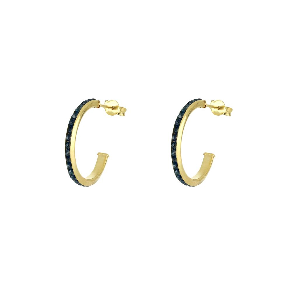 Orecchini donna a cerchio in Oro Giallo titolo 375 (9 carati) dal diametro di 1.4 cm con zirconi Blu.