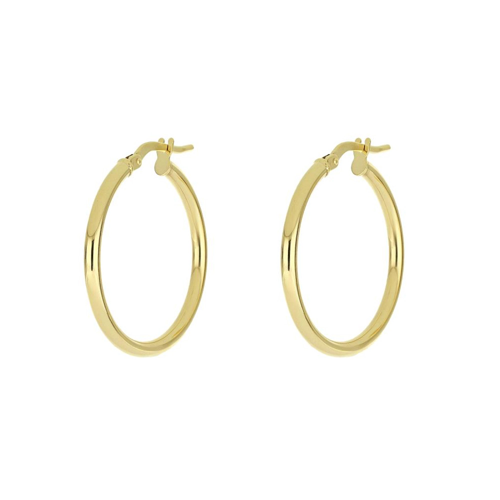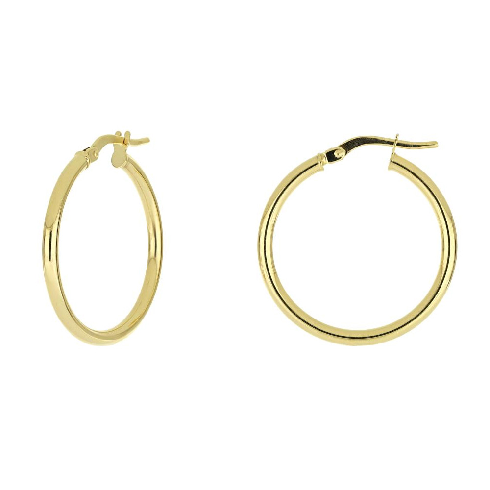 Orecchini da donna a cerchio in Oro Giallo titolo 375 (9 carati) lisci dal diametro di 2.5 cm.