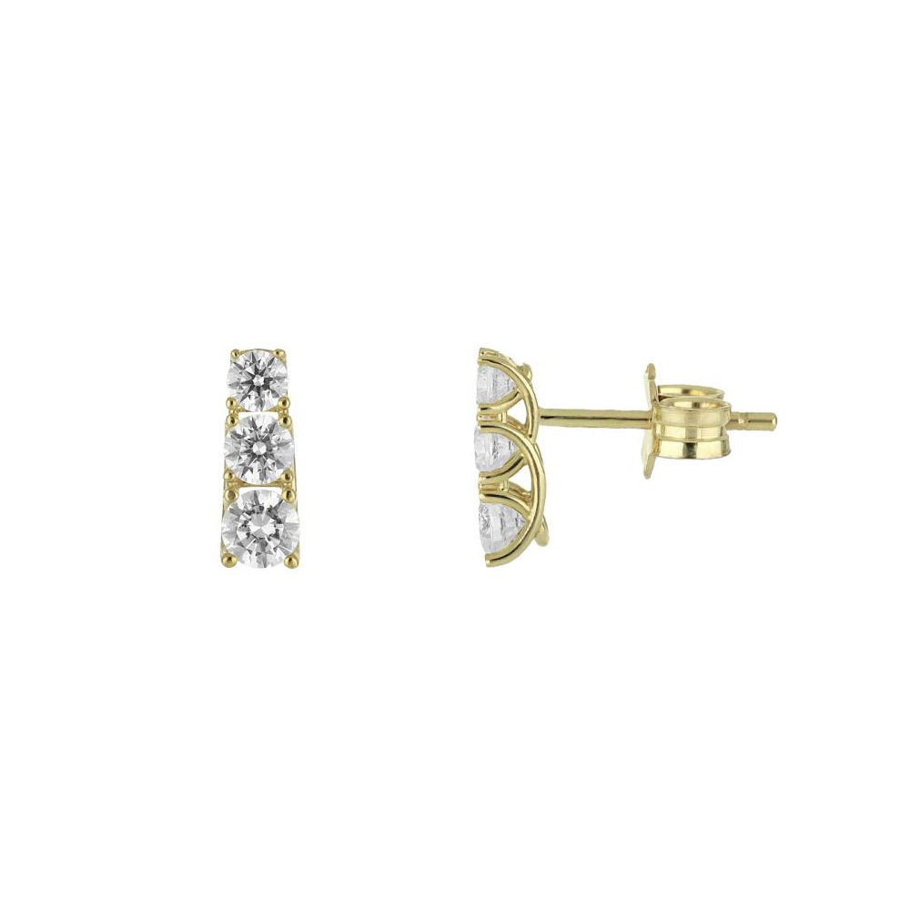 Orecchini donna a trilogy in Oro Giallo titolo 375 (9 carati) con zirconi bianchi Top quality taglio tondo brillante.