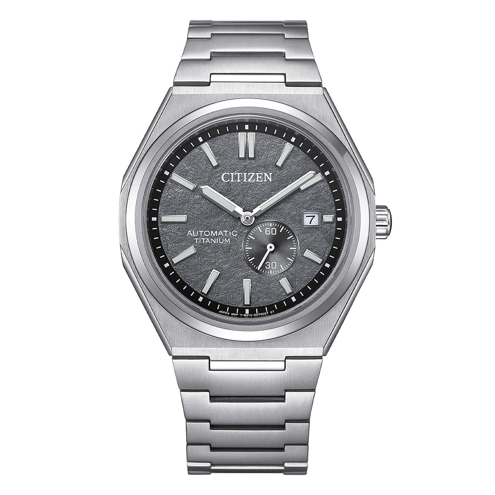 Orologio da uomo Citizen Zenshin in Super Titanio con movimento meccanico automatico, vetro zaffiro, fondello trasparente e quadrante Nero Antracite con piccoli secondi a ore 4/5.