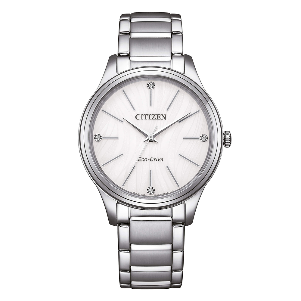 Orologio donna Citizen Lady Casual da 34 mm con movimento Eco Drive a ricarica solare in acciaio con bracciale in acciaio e quadrante Bianco.