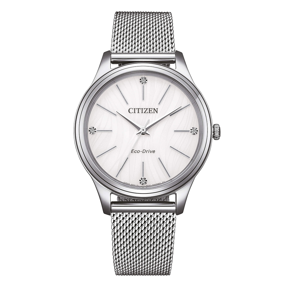 Orologio donna Citizen Lady Casual da 34 mm con movimento Eco Drive a ricarica solare in acciaio con cinturino modello maglia Milano e quadrante Bianco.