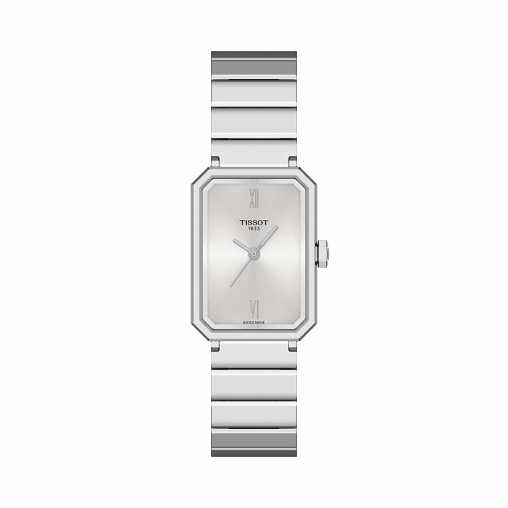 Orologio da donna al quarzo Tissot SRV 30 mm bianco realizzato in acciaio con cassa Rettangolare da 30×21,8 mm e quadrante bianco.