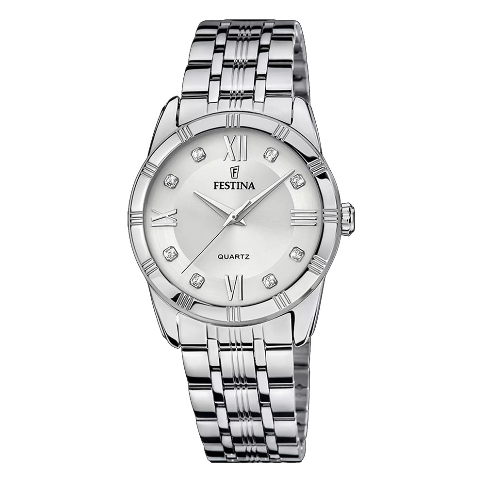 Orologio Festina Mademoiselle silver Lady è un Solo Tempo da donna, appartiene alla collezione Mademoiselle di Festina con quadrante silver e bracciale in acciaio .Negli ultimi anni, il team di design e stile del marchio FESTINA ha dedicato gran parte dei propri sforzi allo sviluppo della sua linea di accessori per donna. La collezione Mademoiselle, la collezione ufficiale di Miss France, ne è il risultato più alto. L’orologio è inoltre resistente all’acqua, pertanto può essere indossato in doccia. Infine la spedizione comprende la confezione originale Festina, contenente il libretto di istruzioni, corredato di garanzia internazionale ufficiale di 2 anni.