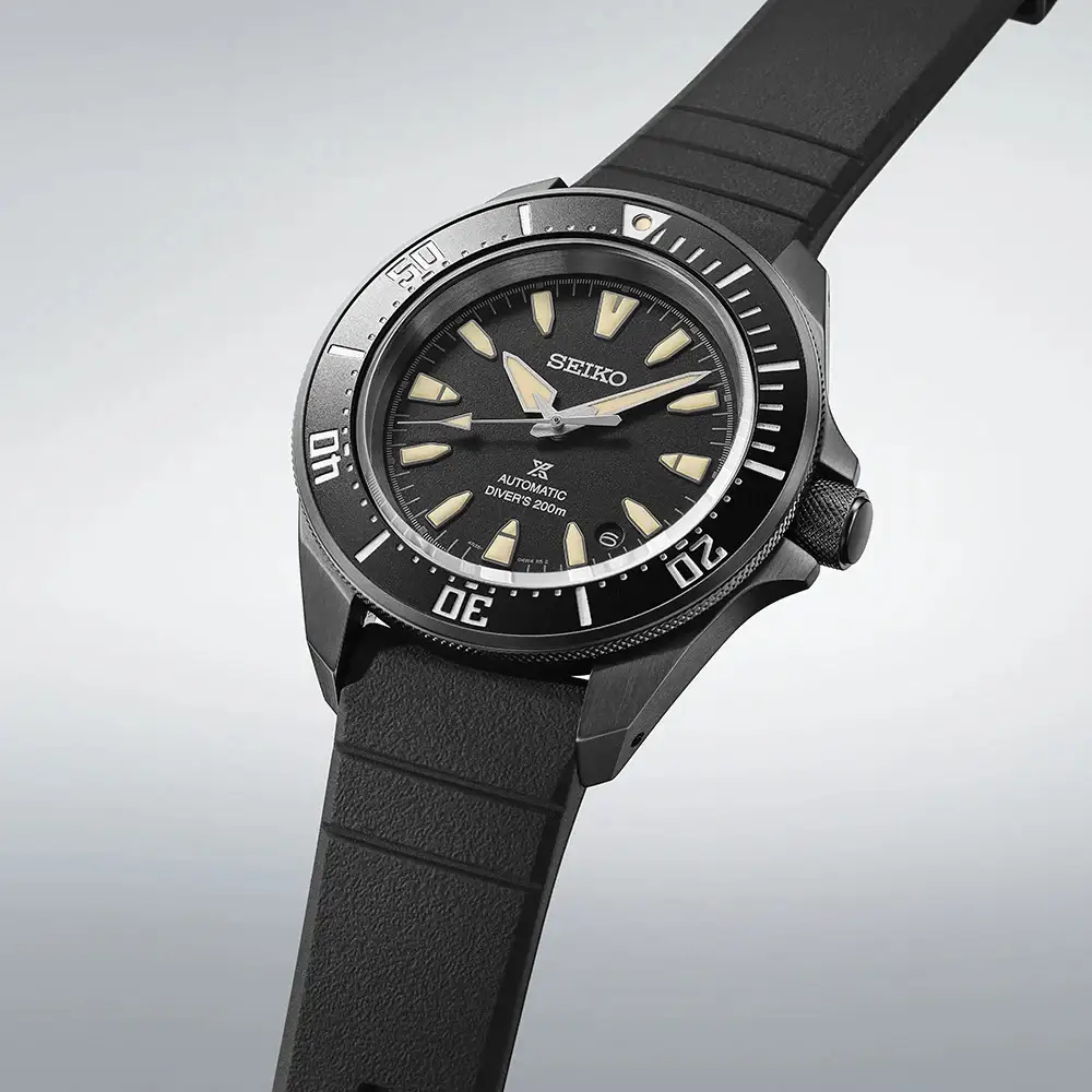 Orologio Automatico da uomo Seiko Prospex New Samurai Nero SRPL15K1 , in acciaio con rivestimento in carbonato di titanio con quadrante nero dallo stile sportivo.