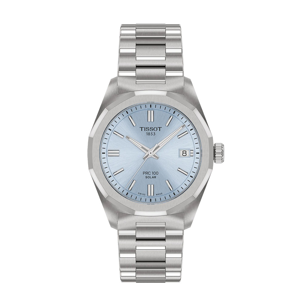 Orologio da donna Tissot PRC 100 Solar Quartz 34mm Azzurro al Quarzo con ricarica solare ,cassa e bracciale in acciaio e quadrante azzurro