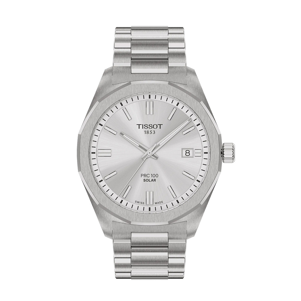 Orologio da uomo Tissot PRC 100 Solar Quartz 39mm Argento al Quarzo con ricarica solare ,cassa e bracciale in acciaio e quadrante argento